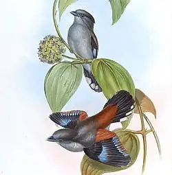 - ↑ BirdLife International (2017). «Serilophus rubropygius». Lista Roja de especies amenazadas de la UICN 2017.1 (en inglés). ISSN 2307-8235. Consultado el 30 de octubre de 2023.