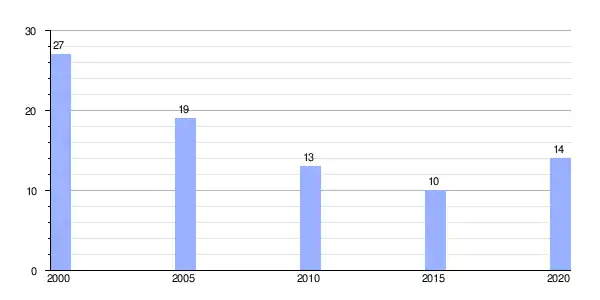 | Gráfica de evolución demográfica de Serode entre 2000 y 2020 |