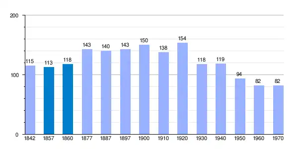 | Gráfica de evolución demográfica de Serrada de la Fuente[2] entre 1842 y 1970 |