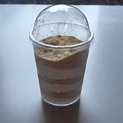 Se sirve frío, normalmente en recipientes transparentes para que las capas que lo forman queden a la vista.[1]