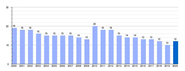 | Gráfica de evolución de Serrate entre 2000 y 2020 |