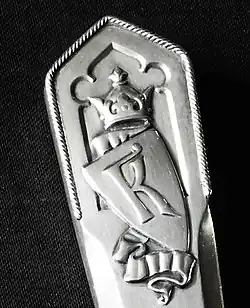 Los motivos de la vajilla presentan elementos de la arquitectura gótica estilizada, adornos vegetales, dragones, grifos, lagartos, serpientes y otras criaturas góticas, lirio heráldico, y escudo apuntado coronado por una corona con un monograma en forma de la letra 'K'.[2]