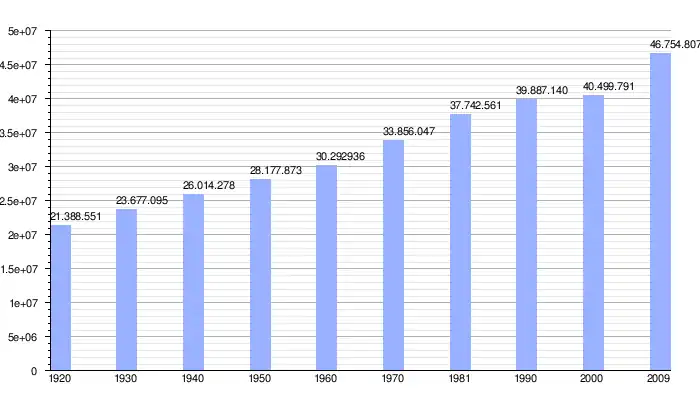 | Evolución demográfica de España entre 1920 y 2009[43] |