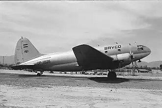 ![]() Un Curtiss C-46 (CP-1025) de SAVCO en Cochabamba fotografiado en 1975 | |||||