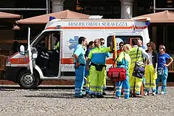 Un paramédico tiene un alto nivel de formación médica prehospitalaria y suele tener habilidades clave que no realizan los técnicos, entre las que se incluyen a menudo la canulación (y con ella la capacidad de utilizar una serie de fármacos para aliviar el dolor, corregir problemas cardíacos y realizar la intubación endotraqueal), la monitorización cardíaca, la interpretación de ECG de 12 derivaciones, la ecografía, la intubación, la pericardiocentesis, la cardioversión, la toracostomía y otras habilidades como la realización de una cricotirotomía quirúrgica.[64] La función más importante del paramédico es identificar y tratar cualquier afección que ponga en peligro la vida del paciente y, a continuación, evaluar detenidamente al paciente en busca de otras dolencias o hallazgos que puedan requerir un tratamiento de urgencia.[65] En muchos países, se trata de un título protegido, y su uso sin la cualificación pertinente puede dar lugar a acciones penales. [66]En Estados Unidos, los paramédicos representan el nivel de licencia más alto de la atención prehospitalaria de urgencia. Además, existen varias certificaciones para paramédicos como Wilderness ALS Care,[67] Flight Paramedic Certification (FP-C),[68] y Critical Care Emergency Medical Transport Program certification.[69]
