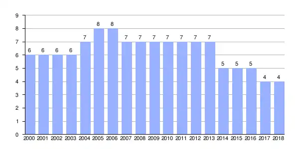 | Gráfica de evolución demográfica de Sesa de Arriba entre 2000 y 2018 |