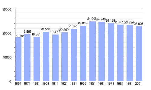 | Gráfica de evolución demográfica de Sessa Aurunca entre 1861 y 2001 |