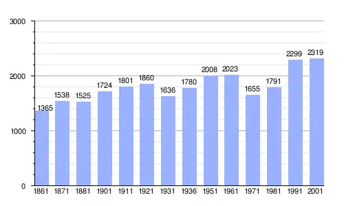 | Gráfica de evolución demográfica de Settingiano entre 1861 y 2001 |