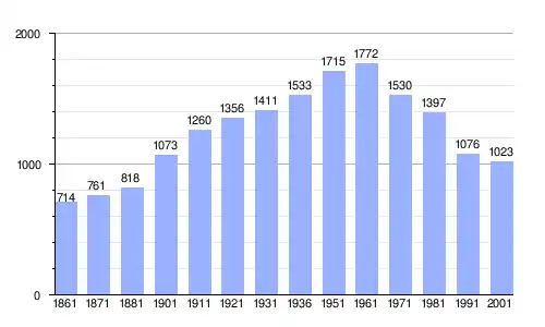 | Gráfica de evolución demográfica de Seulo entre 1861 y 2001 |