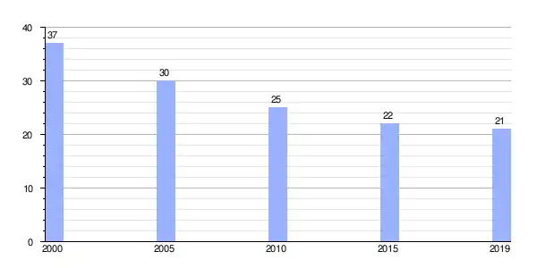 | Gráfica de evolución demográfica de Sevane (aldea) entre 2000 y 2019 |