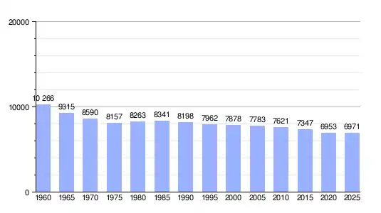 | Gráfica de evolución demográfica de Shōwa entre 1960 y 2025 |