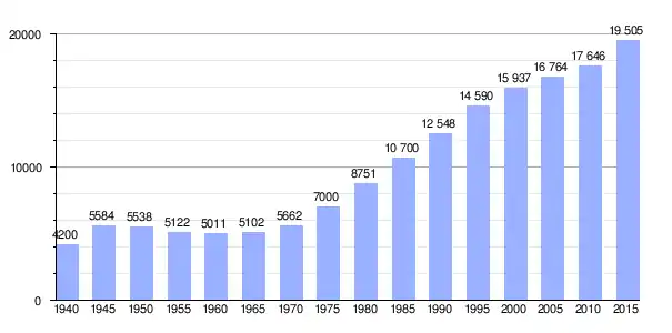 | Gráfica de evolución demográfica de Shōwa entre 1940 y 2015 |