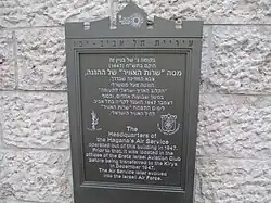 Placa conmemorativa ubicada en la antigua sede del servicio aéreo en la calle Montefiore de Tel Aviv. | |||||