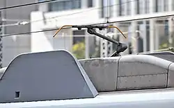 Los coches 2 y 7 tienen cada uno un pantógrafo de un solo brazo.