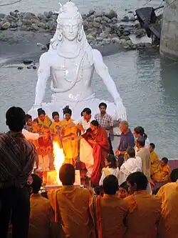 - La ceniza (bhasma) sagrada, proveniente de la cremación de cadáveres, forma una parte importante de la adoración. Se baña a la deidad de Shivá en las cenizas. Luego, se distribuyen las cenizas a devotos, que con reverencia la ponen en la frente y en otras partes del cuerpo.