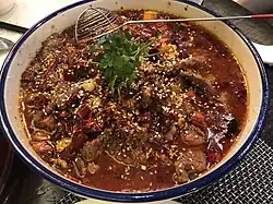 Este plato mantiene toda la blandura de la carne al hervirla en lugar de freírla, ofreciendo una buena combinación de carne tierna, frescura de la verdura y sabor picante de la guindilla y la pimienta de Sichuan.