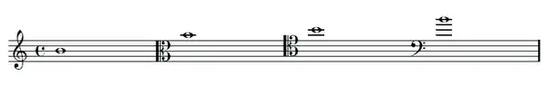 - En clave de do en tercera y en cuarta se sitúa en la primera línea adicional y en la segunda línea adicional respectivamente.