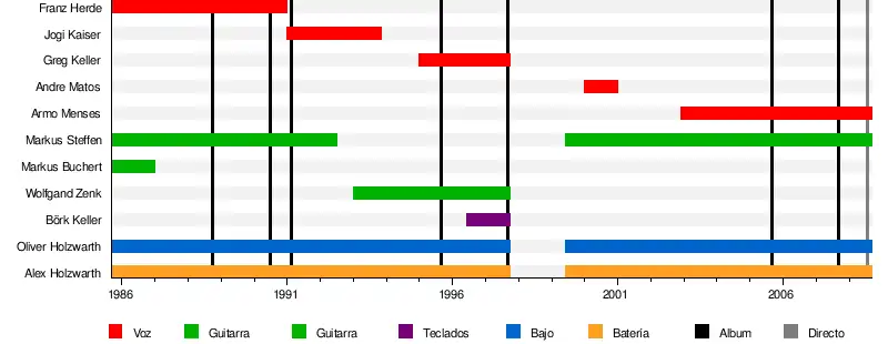 - Markus Steffen − guitarra (todos los álbumes excepto Sophisticated, Uneven)