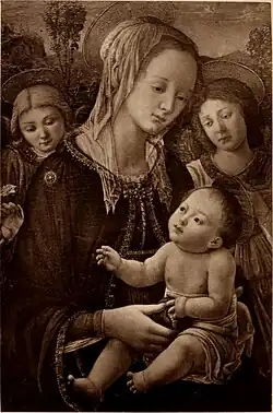 ![]() María con el Niño Jesús en brazos. Jesús y María son los titulares de la congregación. | ||