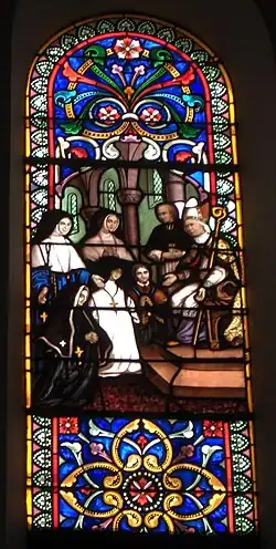 ![]() La fundación de la congregación de las Siervas de María (Vitral en la iglesia de Notre-Dame du Refuge en Anglet). | ||