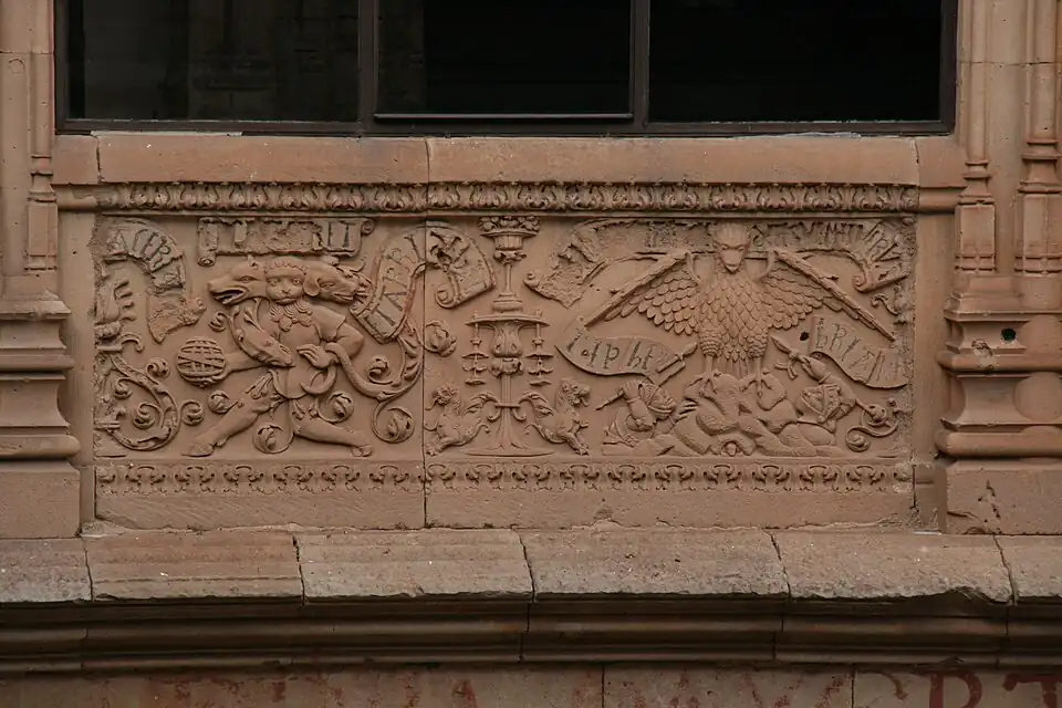 - ↑ Gabaudan, Paulette (1998). Junta de Castilla y León, ed. Mito Imperial, programa iconográfico de la Universidad de Salamanca (primera edición). Valladolid.