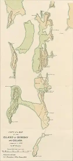 Las siete islas de Bombay eran territorios portugueses del siglo XVI que se extendían frente a la costa oeste de la India, que fueron entregados a Inglaterra bajo este título como parte de la dote de Catalina de Braganza cuando se casó con Carlos II en 1661. Las islas habían sido anteriormente parte de los imperios indígenas como la dinastía Silhara y el Sultán de Gujarat antes de que fueran capturados por los portugueses en 1534. Después de adquirirlos como dote, Carlos II alquiló las islas a la Compañía de las Indias Orientales en 1668 por £ 10 al año. Hacia 1845, las islas se habían fusionado[1]​ en una masa de tierra por medio de proyectos de recuperación de tierras múltiples. La isla resultante de Bombay se fusionó más tarde con las islas cercanas de Trombay y Salsette que se encuentran al noreste y al norte respectivamente para formar la Gran Bombay . Estas islas ahora constituyen la parte sur de la ciudad de Mumbai.