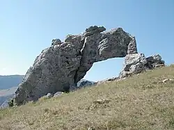 La Pierre Percée La Piedra Percée, en la comuna de Pierre-Châtel, cuya silueta, modelada por la erosión, parece un enorme monstruo agazapado, que ha dado origen a muchas leyendas de dragones.