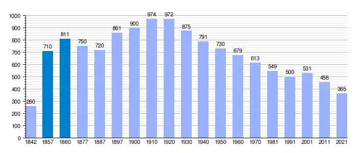 | Gráfica de evolución demográfica de Villanueva de Sigena[4] entre 1842 y 2021 |