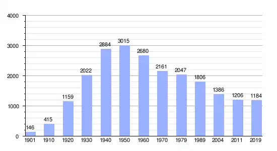 | Gráfica de evolución de Siglufjörður entre 1901 y 2019 |
