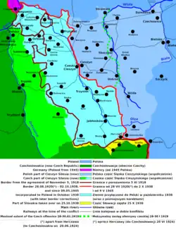 El 1 de octubre de 1938, Zaolzie fue anexionada por Polonia tras la Conferencia de Múnich. El 1 de septiembre de 1939, Zaolzie fue anexionada por la Alemania nazi tras invadir Polonia. Durante la Segunda Guerra Mundial, la Silesia de Cieszyn Silesia de la Alemania nazi. Inmediatamente después de la Segunda Guerra Mundial, las fronteras volvieron a su estado de 1920. Polonia firmó un tratado con Checoslovaquia en Varsovia el 13 de junio de 1958 en el que se confirmaba la frontera tal y como existía el 1 de enero de 1938. La parte checa de la Silesia de Cieszyn siguió perteneciendo a Checoslovaquia hasta la disolución de ésta en 1993 y desde entonces forma parte de la República Checa.