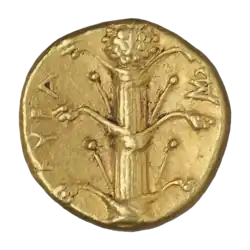 ![]() Moneda de Cirene mostrando una gavilla de silfio | ||