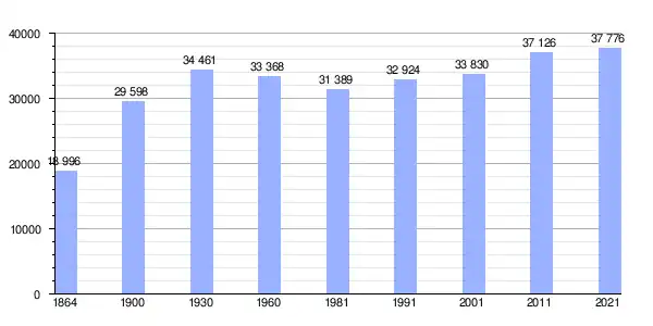 | Gráfica de evolución demográfica de Silves entre 1864 y 2021 |
