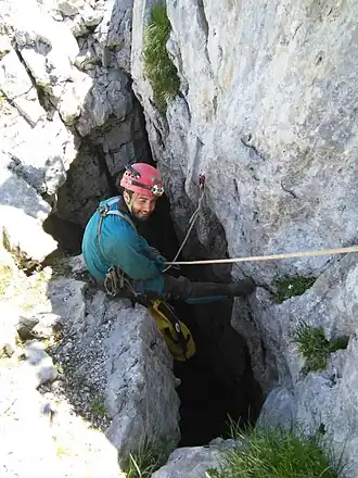 - ↑ Queffelec, Corentin (1994). Jusqu’au fond du gouffre. Record du monde à la Pierre Saint-Martin. Tome 1. Bonnieux: Spéléo Éditions. p. 145.
