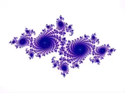 Una forma más sutil de simetría de escala esconde en los fractales. Tal como fueron concebidos por Benoît Mandelbrot, los fractales son un concepto matemático en el que la estructura de una forma compleja parece similar independientemente del grado de grado de aumento con el que se contemplen,[31] como es evidente en el conjunto de Mandelbrot. Una línea costera es un ejemplo de un fractal que se produce de forma natural, ya que conserva una complejidad de apariencia similar en todos los niveles, desde la vista de un satélite hasta un examen microscópico de cómo el agua salta contra los granos individuales de arena. La ramificación de los árboles, que permite que las pequeñas ramitas se conviertan en árboles completos en un diorama a escala, es otro ejemplo.