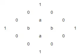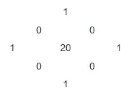 En el caso de la superficie llamada K3, donde vemos una variación Calabi–Yau de dos dimensiones, donde los números de Betti son {1, 0, 22, 0, 1}, el diamante de Hodge queda: