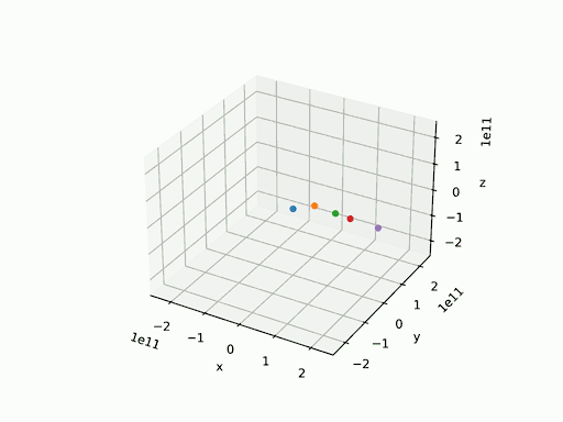 orbital_entities[4] = { 227.923e9,0.0,0.0, 0.0,24.07e3,0.0, 0.64171e24 }; // a planet similar to mars