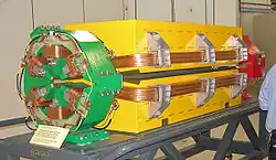 Bob Wilson, un antiguo colaborador de Lawrence, propuso separar los imanes focalizadores del haz de los imanes usados para curvar la trayectoria del haz de partículas en el sincrotrón de Fermilab, finalizado en 1972, donde se alcanzaron 400 GeV.[4] En las décadas siguientes se siguieron construyendo sincrotrones de mayor tamaño y energía, como el Tevatron en Fermilab o el LHC en CERN, dedicados al estudio de partículas subatómicas.