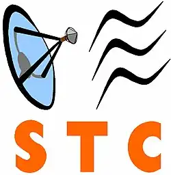El anagrama del Sindicato STC es un conjunto que comprende una antena parabólica con tres bandas sinusoidales que surgen de la misma y las letras S.T.C. debajo de todo el conjunto.