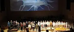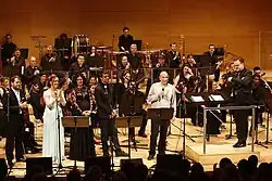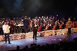 Violines I (14); Violines II (12); Violas (10), Violonchelos (8); Contrabajos (5); Flabiol (1); Tibles (2); Tenores (2); Trompetas (2); Trombones (1); Fiscorns (2); Percusión (7); Piano (1); Arpa (1); Guitarra solista (1); Guitarra eléctrica (1); Bajo eléctrico (1)