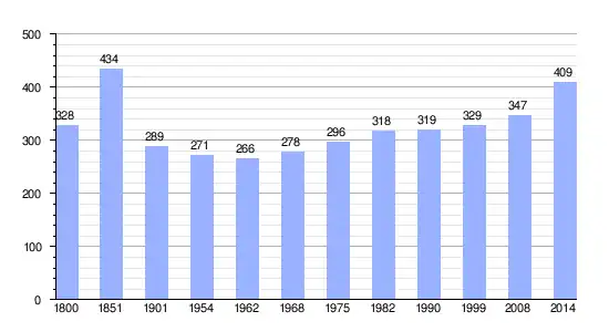 Los datos demográficos contemplados en este gráfico de la comuna de Singrist[4] se han cogido de 1800 a 1999 de la página francesa EHESS/Cassini, y los demás datos de la página del INSEE.[5]