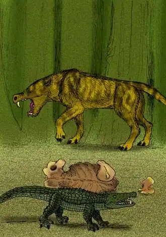 - ↑ Zhou X., Zhai R., Gingerich P. and L. Chen (1995). «Skull of a new Mesonychid (Mammalia, Mesonychia) from the late Paleocene of China». Journal of Vertebrate Paleontology 15 (2): 387-400. doi:10.1080/02724634.1995.10011237.