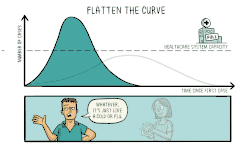 - ↑ Manhire, Toby (14 de marzo de 2020). «Covid-19: All arrivals to NZ must self-isolate for 14 days. Here's what you need to know». The Spinoff (en inglés). Consultado el 1 de marzo de 2021. «Jacinda Ardern with a print-out of the Spinoff 'Flatten the Curve' visual by Siouxsie Wiles and Toby Morris.»