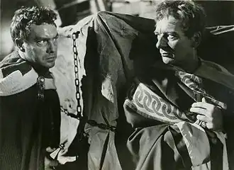 En 1953 hizo su primera aparición en una película de Hollywood, Julio César, de Joseph L. Mankiewicz, interpretando a Casio. Marlon Brando (Marco Antonio) estaba impresionado con él,[125] y James Mason (Bruto) estaba desalentado por su habilidad, aparentemente sin esfuerzo, al actuar.[126] Gielgud, por su parte, consideró que aprendió mucho de la técnica cinematográfica de Mason.[127] Además disfrutó de su estancia de cuatro meses en California, algo no menos importante, como comenta Morley, por la distendida actitud existente allí respecto a la homosexualidad.[128]