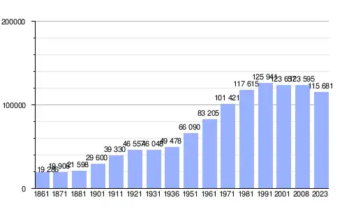 | Gráfica de evolución demográfica de Siracusa entre 1861 y 2023 |