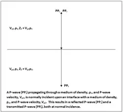 Cuando una onda sísmica se encuentra con una interfase entre dos materiales con distintas impedancias acústicas, una porción de la energía de la onda se reflejará en la frontera, mientras que la otra parte de la energía será transmitida pasando a través de la frontera. La amplitud de la onda reflejada se obtiene multiplicando la amplitud de la onda incidente por el coeficiente de reflexión sísmico , determinado por el contraste entre las impedancias de los dos materiales.