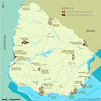2. a b Poder Ejecutivo (16 de febrero de 2005). «Decreto 52/005 Sistema Nacional de Áreas Protegidas». Consultado el 21 de febrero de 2014.