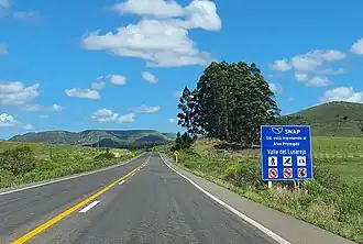 Cartel que anuncia el ingreso al Paisaje protegido Valle del Lunarejo.