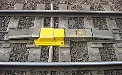 - Un imán en el centro de la vía, aproximadamente ubicado 180 m antes de una señal o indicador de velocidad máxima.