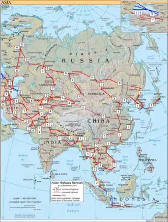 - ↑ Kamat, Rahul The Great Asian Highway Archivado el 17 de enero de 2010 en Wayback Machine., Project Monitor website, 31 January 2005. Retrieved 2009-05-05