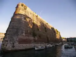 Una muralla unía el fuerte nuevo y el antiguo a lo largo de la costa. La ciudad también estaba cubierta por baluartes sobre los montes Abraham y Salvatore y por el fuerte intermedio de San Rocco. Por mar, la ciudad estaba protegida por la muy fortificada isla de Vido, y la isla más pequeña de Lazaretto, a dos millas de la costa, que también estaba protegida por los franceses.